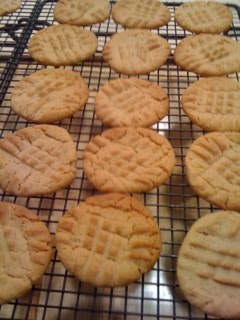 Preheat oven to 375 degrees. In a large bowl, cream together the shortening and peanut butter. Add sugars, eggs and milk...mix well. Add vanilla and mix again.